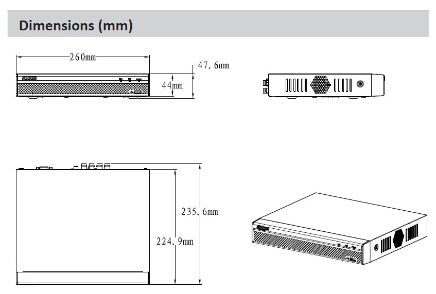 ขนาดตัวเครื่อง Compact 1U 260มมx236มมx48มม.