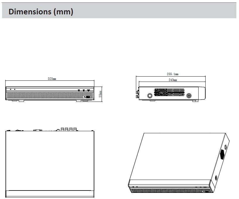 ขนาดตัวเครื่อง Mini 1U 325มมx255มมx55มม.
