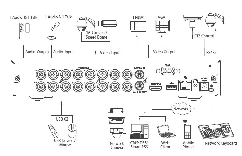 รองรับกล้อง Dahua (-A) ที่มีไมค์ในตัวได้ทุกช่องบันทึก