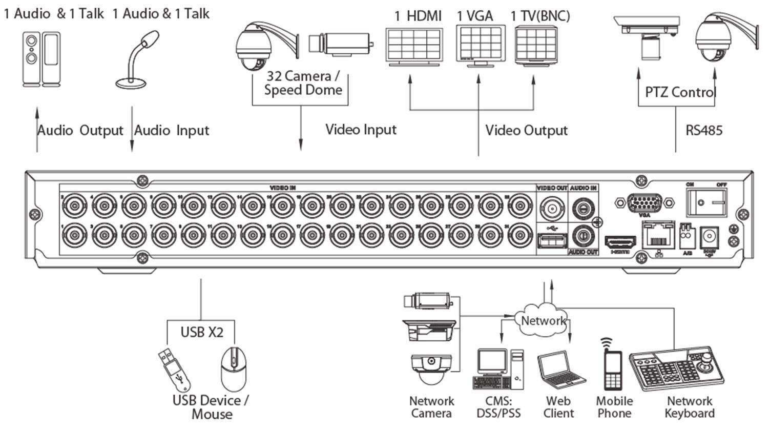 (รองรับกล้อง HD ทุกระบบ หรือ Dahua IPC รวมกัน 32ช่อง)